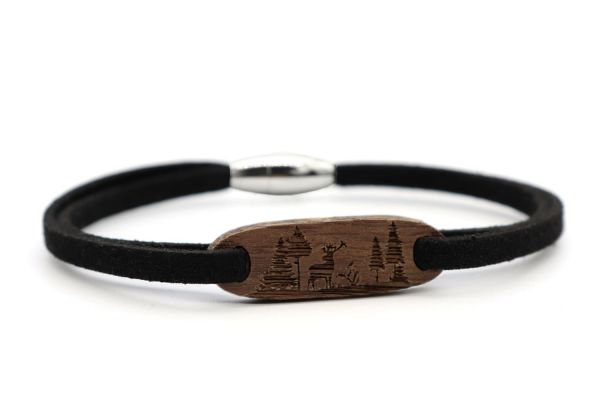 -- Armband aus hochwertigen Kunstleder mit Nussbaum Holz und Hirsch Gravur--
